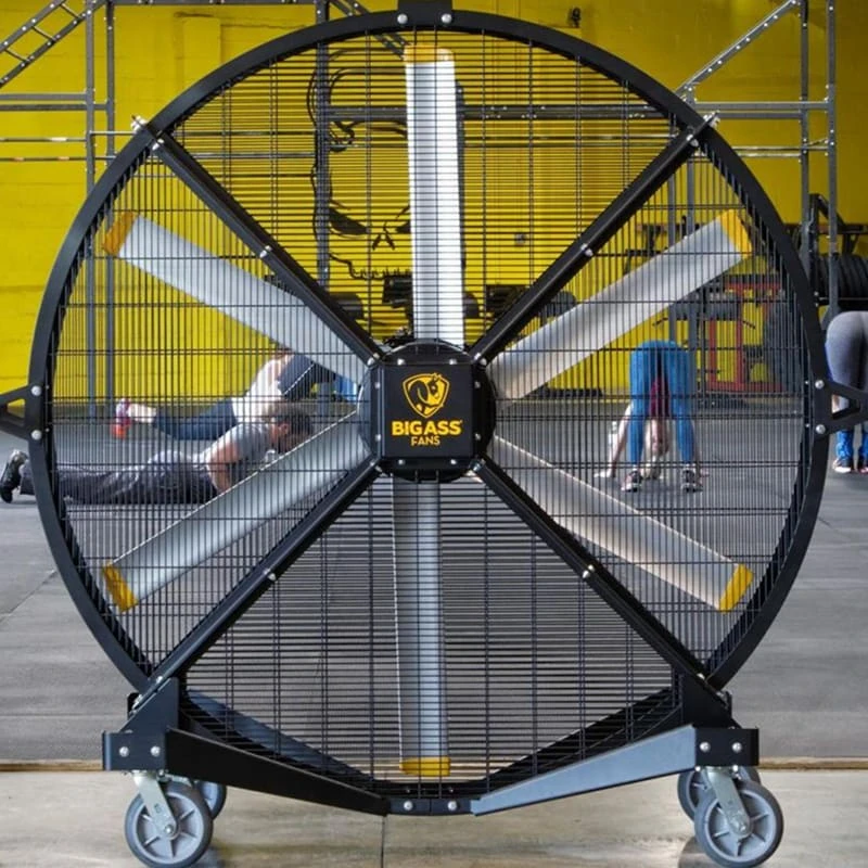 The Black Jack from Big Ass Fans is a uniquely portable industrial floor fan equipped with two carrying handles and indoor/outdoor rubber wheels. With a relatively compact height of 6.5′, the Black Jack can easily navigate through standard interior doorways and hallways, but its ultra-powerful airflow—spanning 120’—makes this fan a viable option for everything from crowded gyms to outdoor events, barns, etc.