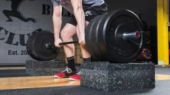 Please Note: Less experienced lifters should be cautious when using blocks, as missed drops can result in the bar deflecting or rebounding into harm’s way. It is recommended to start with less weight than what you’re accustomed to with lifts from the floor. Rogue also suggests trying different stack heights to determine which starting position works best for you.