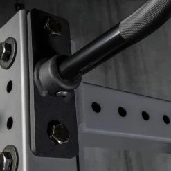 With this design—developed with renowned strength coach and MobilityWOD founder Kelly Starrett—the standard 120MM Supernova mobility ball is fused with a chrome steel mounting adapter that connects to the 3” face of any Rogue Infinity or Monster Lite upright. Users can quickly remove and securely re-mount the Supernova at different heights using the unit’s simple pin system and screw-on knob. Once set up, the ball will rotate on an axis perpendicular to the mount, allowing the user to move up and down while the Supernova rolls with them. The result is hands-free mobility training with far greater stability.