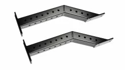 Each M-Lite foot extension is made in the USA from 3×3” 11-gauge steel with an MG Black Powder Coat finish, and features a series of 7 laser-cut holes (5/8” in diameter, spaced 2” on center) along the horizontal portion of the attachment, with 4 additional holes along the angled portion. No mounting hardware is included with this kit, as customers can simply use the existing hardware on a compatible Monster Lite rack to attach the foot pair.