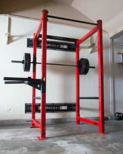 Once installed, the back of the power rack will be positioned at 12.8″ off the mounting wall.