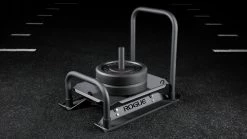 The Rogue Alpaca Sled is a new adaptation of our Echo Dog Sled, featuring a set of single-formed, bent steel handles and a unique, loadable pan attachment. As seen during its debut at the 2022 CrossFit Games, the Alpaca adds significant versatility and efficiency to any sled workout, as the user can quickly grab-and-add weight to the 21.5” x 13.5” steel pan in the form of kettlebells, dumbbells, sandbags, etc., without concern of the items falling out during use. Traditional weight plates can also still be used simply by sliding the included weight stack spacer over the sled’s plate post.
