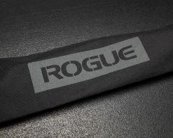 Each Rogue Barbell Carry Bag includes a secure, hook and D-ring closure on one end, and a hook-and-loop section for adding custom patches on the opposite end. The center of the bag features a laser-cut Cordura Rogue label; black text on grey panel.