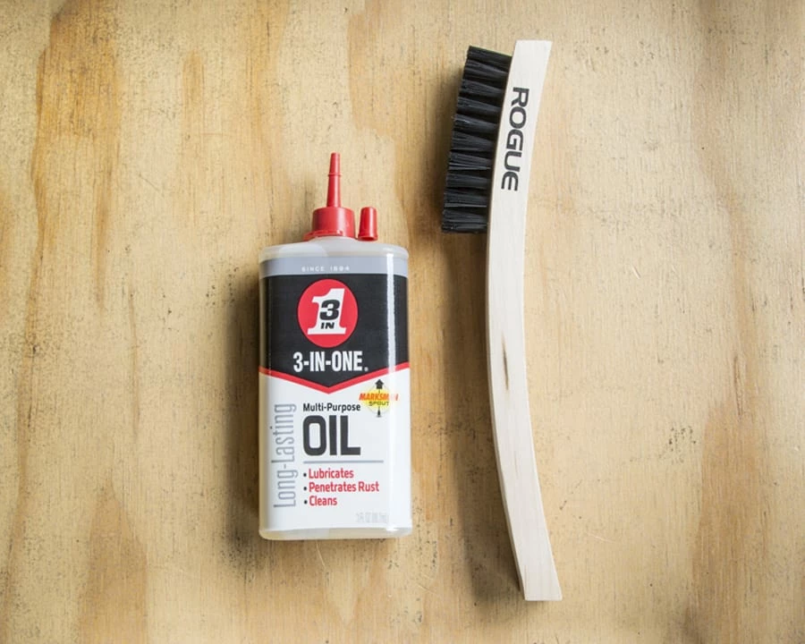 Unlike many similar products sold at home improvement and appliance stores, both the 3-in-One oil and brush are made in the USA and time tested specifically for barbell upkeep. The nylon bristles on the Rogue brush also make it safe for use on any type of finish.