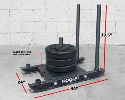 The CrossFit Games battled-tested Rogue Dog Sled comes standard with a quarter-inch steel base plate, 2×3” 11-gauge steel tubing, and a pair of 3-foot upright push bars designed to accommodate both high and low push stances. Compared to many prowler and speed sled designs, the portable Dog Sled has a smaller overall surface area, allowing you to get the most out of the plates that you own.
