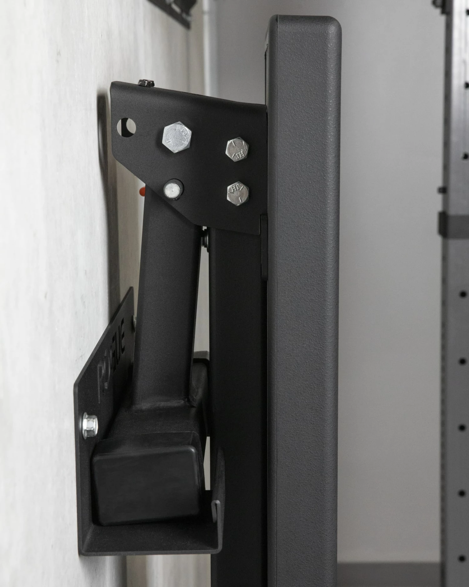 The Rogue Fold-Up Utility Bench introduces a new hinged leg + detent pin design that makes the unit uniquely collapsible for improved space efficiency. A custom, wall-mounted steel Bench Hanger is also included standard (along with 3/8″ x 2-1/2″ lag bolts), enabling athletes to store the Utility Bench securely on a gym wall when not in use.