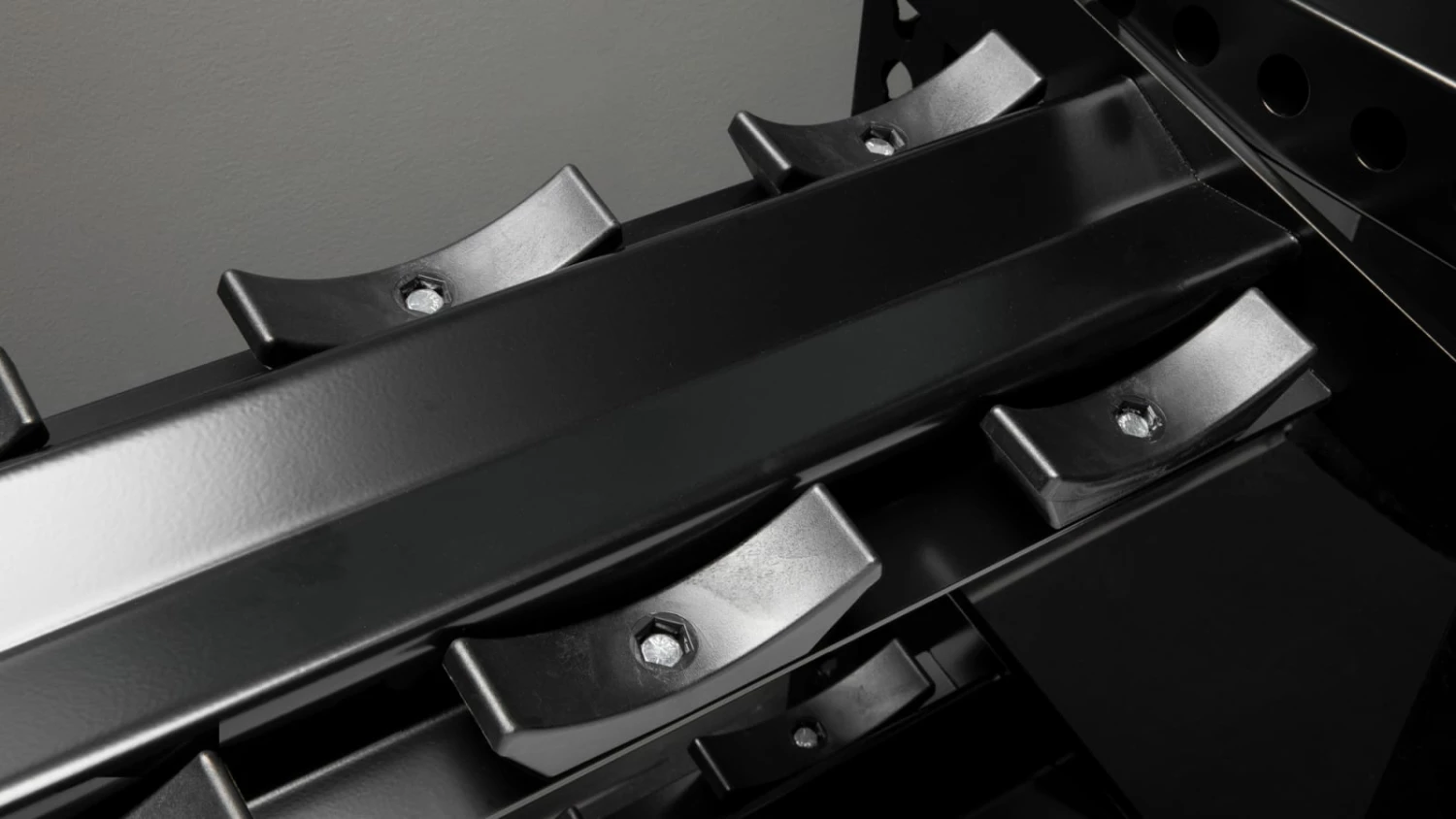 To better protect both the equipment and the athletes using them, the Monster 3-Tier Dumbbell Rack features plastic saddles and a central rail divider to prevent the dumbbells from sliding, jarring loose, or catching an athlete’s hand on a misplacement. The unit is manufactured in the USA, and ships standard with a pair of bolt-on, laser-cut branding plates and a set of rubber feet for added stability and floor protection. Some assembly is required, and the following tools will be needed: