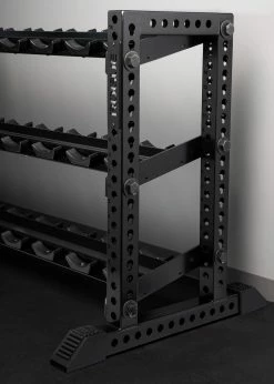 Rogue’s Monster 3-Tier Dumbbell Rack is an HD version of our standard 3-Tier DB Rack. Constructed from 3×3” 11-gauge steel, this professional-grade 275 LB unit features the same side panels as our Monster Mass Storage system, with 1” hardware available in a bright zinc or (as an upgrade option) proprietary matte black finish.