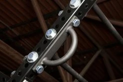 The unit is manufactured in Columbus, Ohio, and features the same 1.25″ diameter, 43″ pull-up bars that come standard with our Monster rigs and racks, including the signature Rogue Textured Black powder coat finish. The four pull-up bars are connected via a set of two 3×3″ 11-Gauge Laser Cut Steel arms, which are secured to the rig using laser-cut and bent 0.3125″; plates. Because we’ve spaced the holes 2″ on center along the full length of the arms, users can select their own custom-spacing for the rungs. Both the arms and brackets are finished in our Satin Black powder coat.