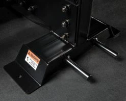 The freestanding version of the Rogue Monster Rhino Belt Squat requires no separate rack/rig for set-up, as the system includes a pair of 53.925” steel legs for mounting and two angled 3×3” front feet for platform stability. This compact unit can be set up in garage gyms, low-ceiling home gyms, or full-scale facilities, offering athletes the ability to get many of the lower body training benefits of squats and other workouts without putting unnecessary stress on the shoulders or lower back. See Also: The Rack-Mounted Drop-In Rhino and Rhino + RM-3 Rack package