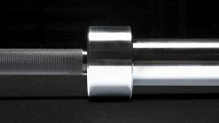 The E-Coat Ohio Deadlift Bar’s bright zinc sleeves feature a quality snap ring construction—far superior to the cheaply produced bolt-and-pin style sleeves of some other brands. The powerlifting knurl marks on this bar are a bit deeper / more aggressive than our Standard Rogue Ohio Power Bar, but machined in the same pattern. There is no center knurl.