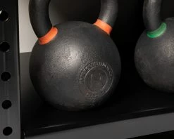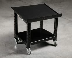 Weighing in at 132.5 LBS unloaded, this compact but powerful storage rack features 2×2” 11-gauge steel legs, (2) 7-gauge steel shelves, and (4) heavy-duty casters each rated at a 300+ LB weight capacity. This gives the Rogue PowerBlock Cart a total capacity of well over 1,000 LBS, enough to easily hold and smoothly transport full sets of PowerBlocks along with additional gear/accessories placed on the bottom shelf.