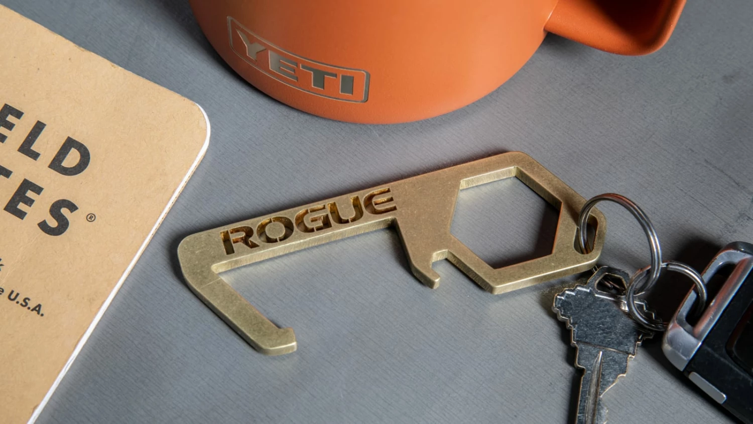 The Rogue Utility Key is a lightweight, pocket-sized accessory that allows the user to open doors/windows/gates, press buttons, and utilize touchscreen displays without directly touching potentially contaminated surfaces. It’s also a handy on-the-go bottle opener and 15/16” wrench (compatible with the 5/8” bolts of the Rogue Monster Lite series).