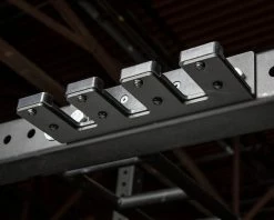 The UHMW lining helps prevent any harsh contact with the bar’s collar when you set it on the hanger, and additional Protective UHMW plastic layer on the edge of the unit keeps each bar stabilized and secure when not in use.