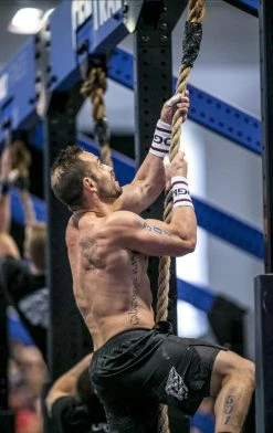 These quality, one-size-fits-all Rogue Wrist Bands are produced by Skyline Socks of Seattle, Washington, and feature the Rogue logo in blue on white, with red and blue stripes. Comfortable, breathable, and flexible, these all-weather sweatbands are the simple, good-looking way to keep your hands dry and your regimen in motion.