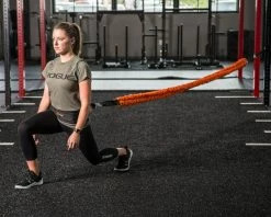 Suited for small home gyms and large training facilities, alike, the Son of the Beast’s unique double anchor points also make it easy to set-up virtually anywhere outdoors, using a tree, park bench, etc. This versatility applies to its functionality, as well. The sheathed Slastix resistance bands that make up the ropes can be used for standard battle rope slamming (the further you stand from the anchor point, the more challenging the workout) or easily adapted via the Power Pull belt for resisted sprints, resisted jumping (broad jumps, consecutive jumps), and resisted lateral movements.