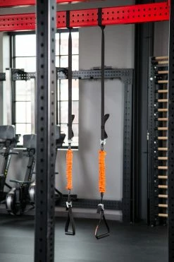 The Body Weight Gym from Stroops is a go-anywhere suspension training system customizable for athletes of any size, skill level, and discipline. The quality American-made kit features a pair of 1.5” wide nylon connecting straps with removable 150LB Slastix (elastic sleeve) resistance bands and 1.375” diameter handles / footholds. The 90” long straps are easily adjustable and can be attached quickly and securely to a rack crossmember or comparable anchor point.