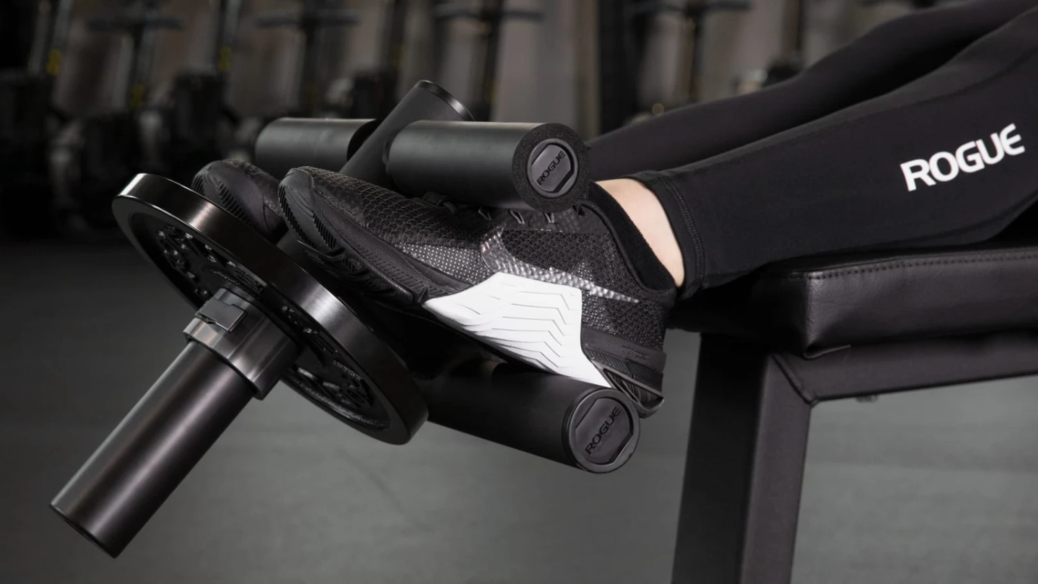 The TF-1 is designed to sit upright with the acetal sleeve angled upward for easy loading and unloading. A collar must be used to secure the plates for use. When ready to train, the athlete simply slides their feet between the two catch tubes–the top tube includes a closed-cell neoprene cover for optimal comfort.